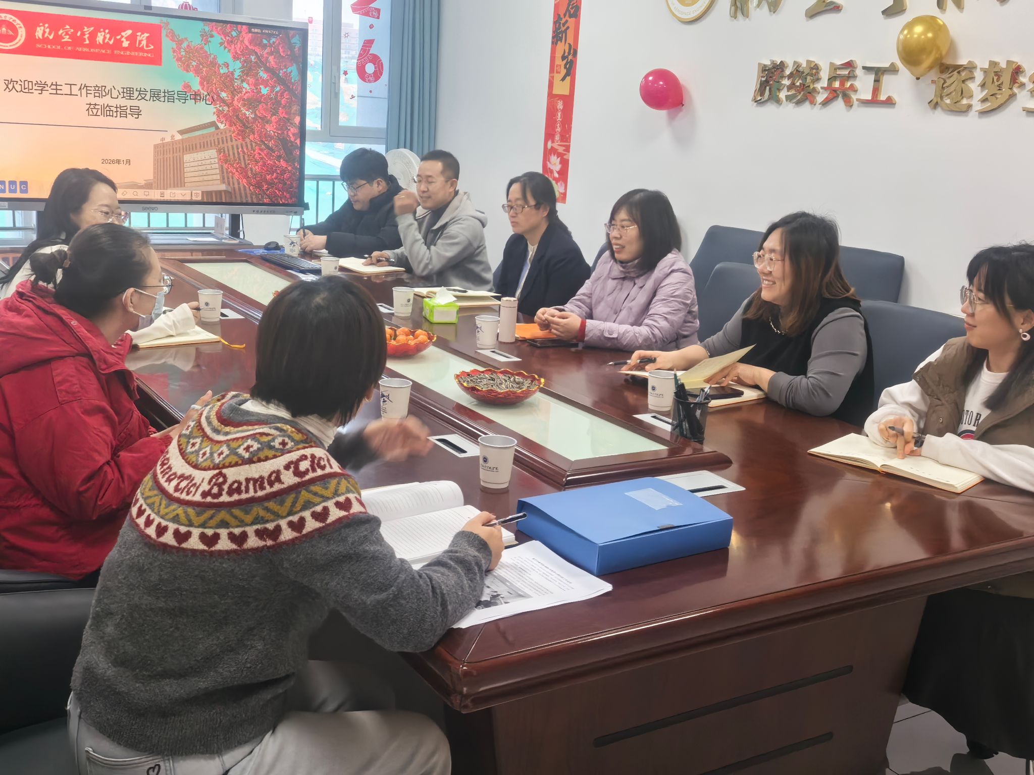 为深入学习贯彻习近平总书记关于教育的重要论述,全面落实立德树人根本任务,进一步加强和改进大学生心理健康教育工作,提升心理育人实效,2026年1月4日,中北大学学生工作部(处)心理发展指导中心主任李晓彧老师,王潇老师莅临航空宇航学院,对学院心理健康教育工作进行实地调研与专项指导。航空宇航学院党委副书记张丽花、全体辅导员参加了工作汇报与交流座谈会。
