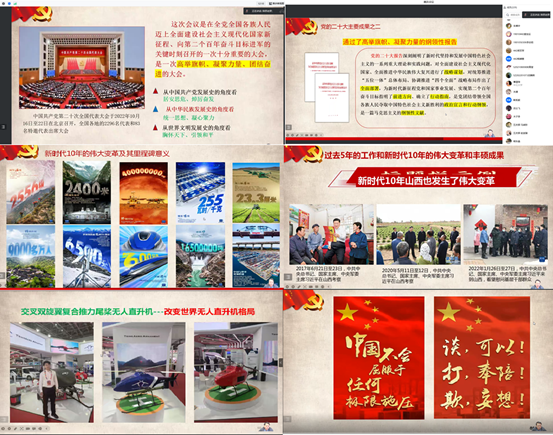 在把握主要内容部分,他从深刻领会大会主题和丰硕成果、过去5年的工作和新时代10年的伟大变革、马克思主义中国化时代化、关于中国式现代化、全面建设社会主义现代化国家的目标任务、坚持党的全面领导和全面从严治党、应对风险挑战七个部分来讲解需要把握的主要内容。重点讲述了四个面对的复杂局势下,以习近平同志为核心的党中央做出的“3+16+4”成就,并结合习近平总书记三次山西调研及省委提出的“浮现画面、体会情怀、牢记教导、感恩奋进”的总体要求,为学院、党员发展指明了努力的方向。他要求大家既要认识到这十年国内外形势的新变化、新挑战,更要怀揣这“非凡十年”中生生不息的精神力量,不仅要把握第二个百年奋斗目标提出的历史,还要明确当代青年的责任、担当、要求,以实际行动学习好、领会好党的二十大精神,把学习党的二十大精神当做砥砺品格的“思政课”、成长成才的“必修课”,更要积极投身到全面建设社会主义现代化国家的目标任务中去。