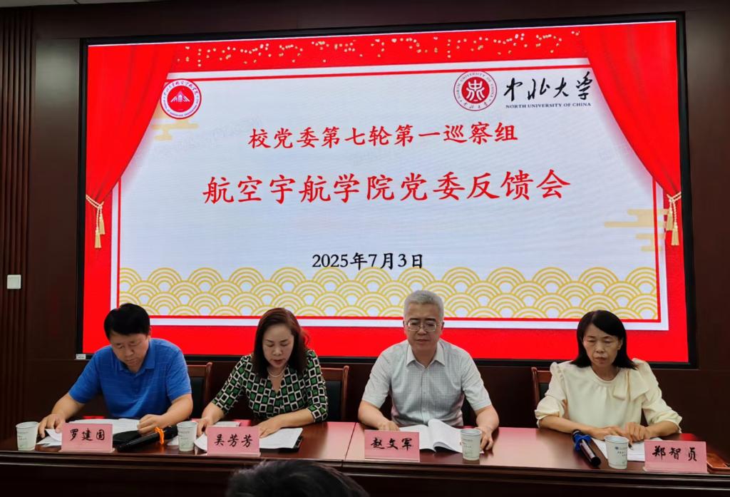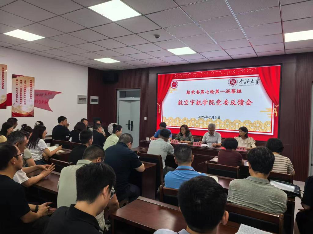 根据校党委第七轮巡察工作的统一部署,2025年7月3日上午,第七轮第一巡察组在航空宇航学院310报告厅召开巡察航空宇航学院反馈会。校巡察工作领导小组常务副组长、校党委副书记赵文军出席会议,校党委巡察办公室主任郑智贞、副主任季亚丽、第一巡察组组长吴芳芳及全体成员、学院全体教师、学生代表参加会议,会议由郑智贞同志主持。