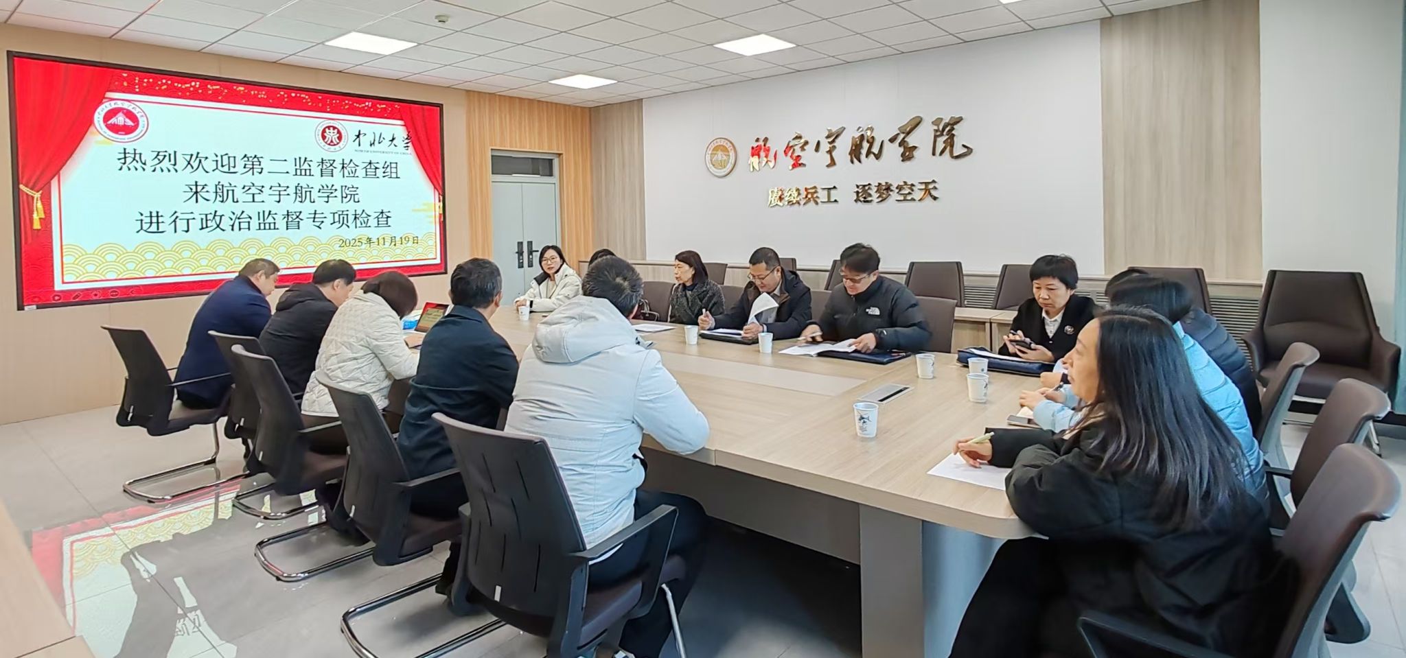 为扎实推进学校政治监督工作,将其成效切实转化为发展动力,11月19日上午,校第二监督检查组一行五人在王晓东同志带领下,莅临航空宇航学院开展政治监督专项检查。学院领导班子、党委委员、各科室负责人及组织员参加会议。