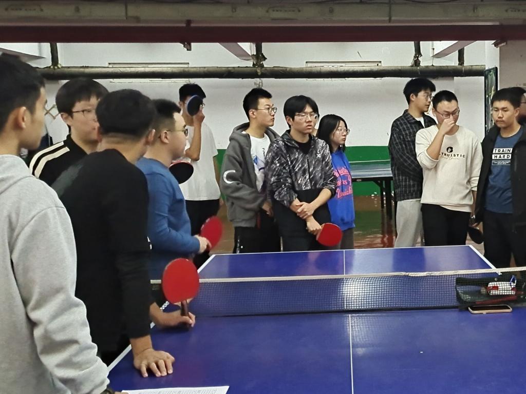 寒风凛冽,旋转起身扬起尘。4日下午,裁判员先于线上组织每班队长进行抽签:504-542,503-541,501-505,502轮空。5日下午三点,每个队伍进行了热身,之后裁判员召集了每队队长并仔细讲解了规则,随后裁判员将三组比赛队伍分别安排在三个乒乓台。准备工作做好后,激烈的比赛正式开始!