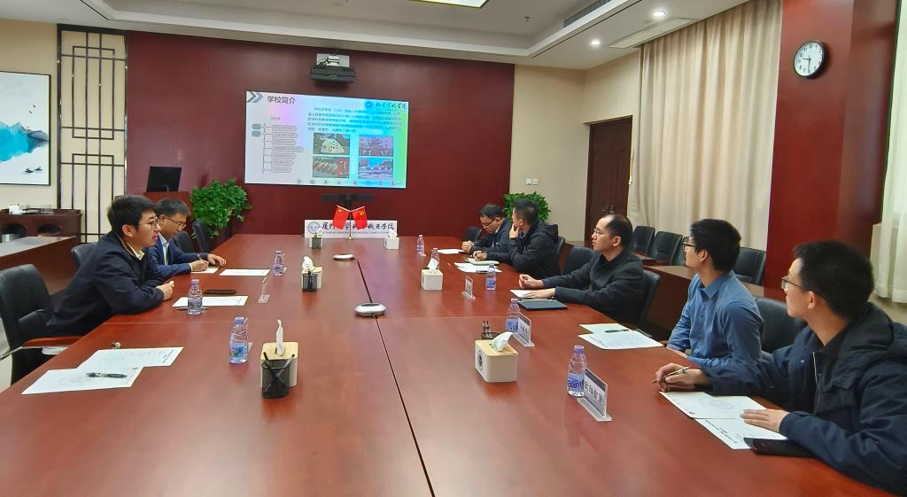 接着,我院李京阳院长介绍了学校发展史、学院师资力量、科研成果、成果转化、教育教学以及青年教师的成长等情况,党委副书记史瑞根介绍了学院建院以来的学生工作开展情况。然后,双方就学航空航天学院大团队的组建情况、信息化平台的打造、学科建设情况等工作进行了深度交流和沟通。