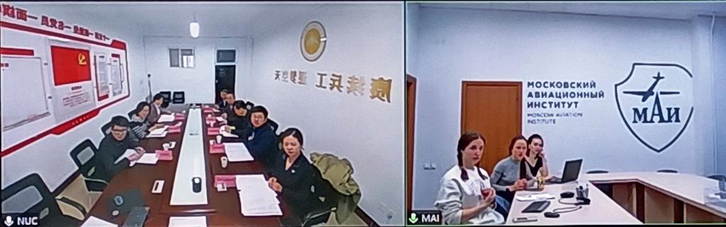4月6日下午,中北大学航空宇航学院与莫斯科航空学院举行线上视频会议商讨校际间合作交流与联合办学事宜,莫斯科航空学院国际项目合作部负责人安娜塔莉娅、莱巴科娃和马可尼格罗基娜参加了此次会议,中北大学国际教育学院院长弓亚琼、副院长刘晓玲、办公室主任樊鹏,航空宇航学院党委书记罗建国、院长李京阳、副院长徐鹏、副书记史瑞根出席了此次会议,解凤灵老师担任本次会议俄语翻译。