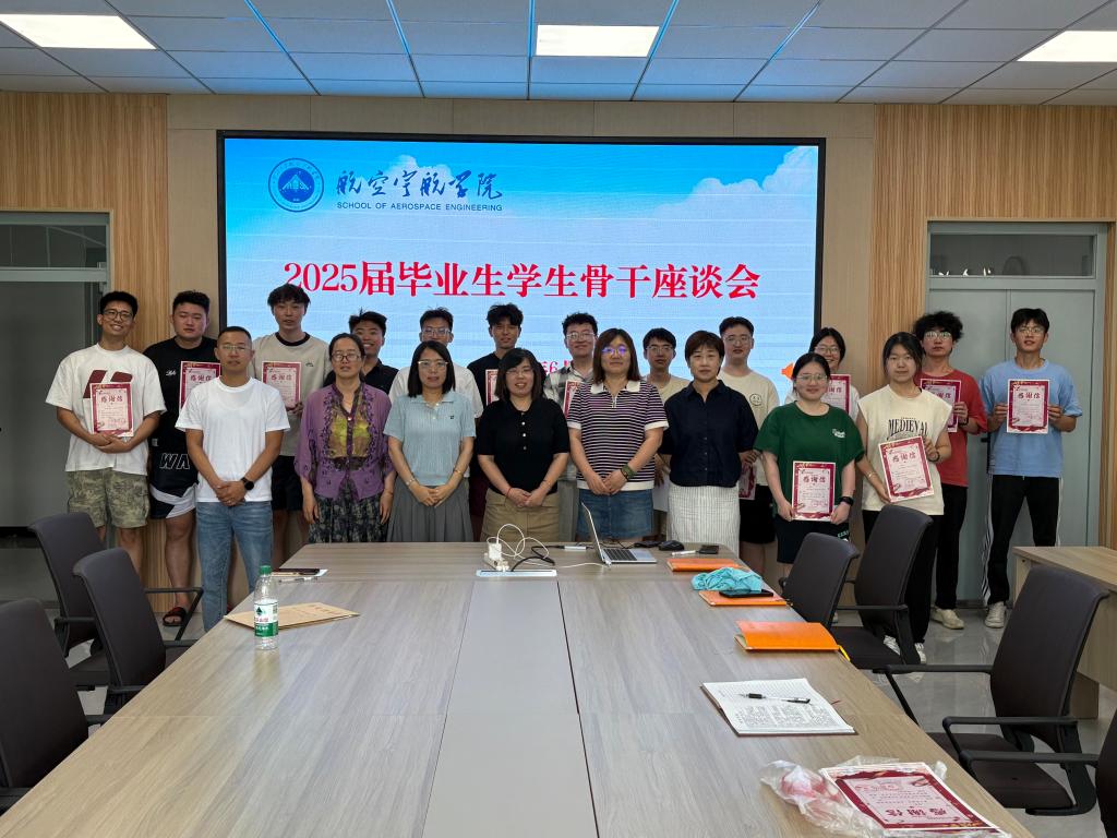 为充分发挥基层学生骨干的桥梁纽带作用,倾听毕业生心声,6月12日,航空宇航学院在314会议室召开 2025 届毕业生学生骨干座谈会。学院党委书记罗建国、党委副书记张丽花、全体辅导员及2025届毕业生学生骨干齐聚一堂,共话成长感悟,畅谈未来规划。