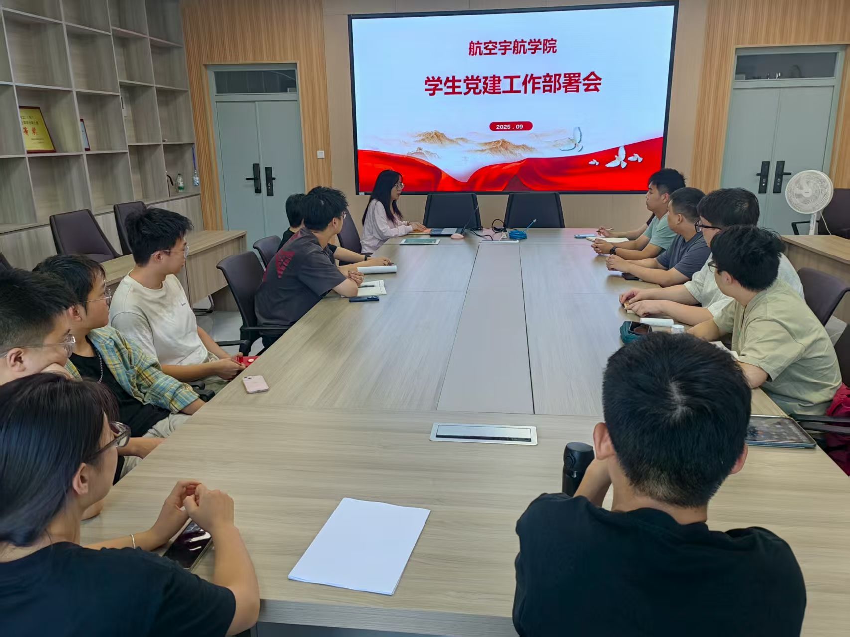 为深入学习贯彻习近平新时代中国特色社会主义思想和党的二十大精神,全面落实新时代党的建设总要求,进一步提升学生党建工作质量,强化党建引领学生成长成才的核心作用,9月10日下午,航空宇航学院于院楼314会议室召开了新学期学生党建工作部署会。学生党支部全体支委参加会议,会议由王姣老师主持。
