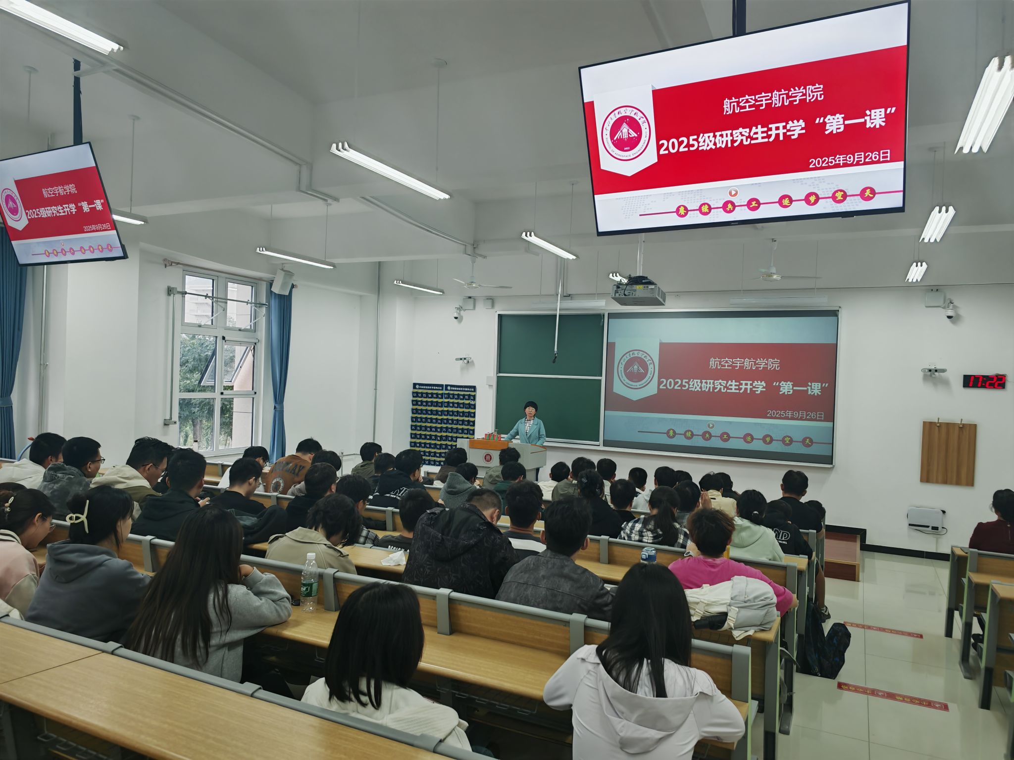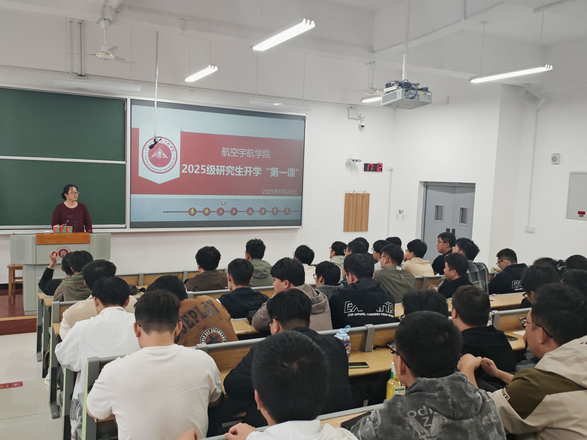 2025年9月26日,航空宇航学院为 2025 级硕士研究生精心打造的“开学第一课”在17101H顺利开课。课程由学院科研副院长徐鹏、新生班主任李国平及科研科科长韩文艳共同主讲,从学术认知、导学协作、毕业规划三个维度,为新生搭建起研究生生涯的“导航框架”。