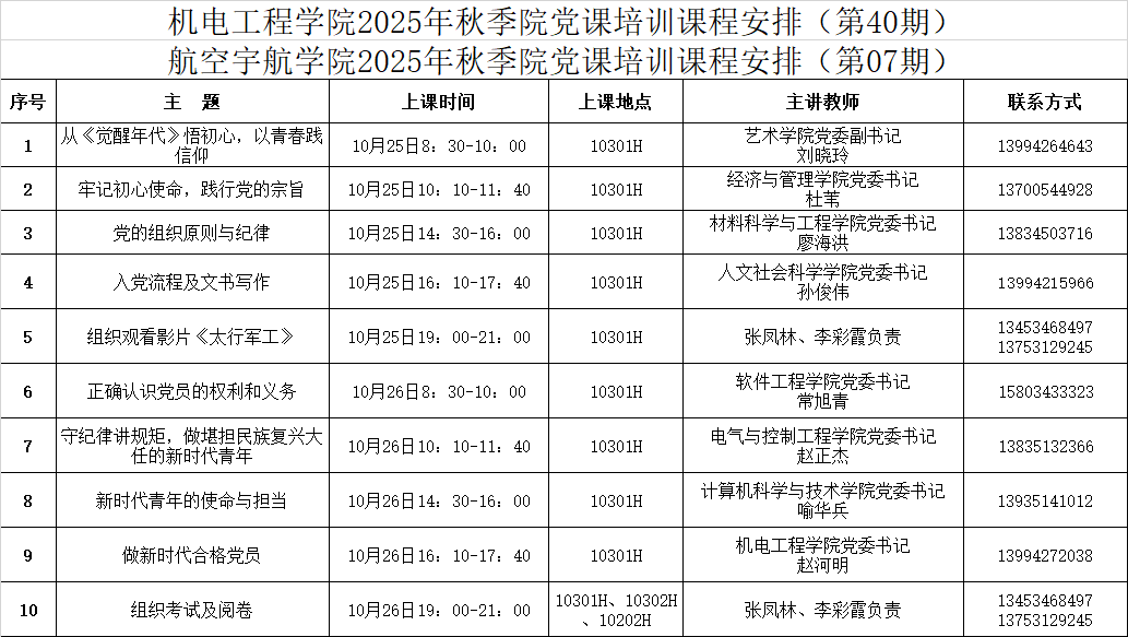 为切实加强入党积极分子教育培养,筑牢理想信念根基,航空宇航学院联合机电工程学院于2025年10月25日至26日,在10301H教室共同举办了为期两天的2025年秋季入党积极分子培训班。本次培训课程体系完善、师资力量雄厚、形式丰富多样,取得了显著成效。