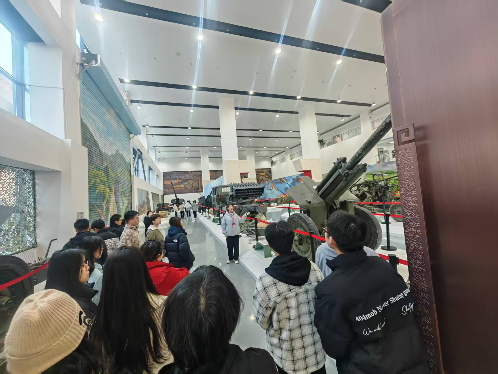 步入展区,21门大炮、19门小炮的阵列即刻唤起厚重的历史感——其中包括一门抗日战争时期从日军手中缴获的火炮,斑驳的炮身、磨损的炮架上,仿佛仍留存着硝烟与战斗的痕迹。“这门炮曾经击倒了日本名将”“那批小炮是当时根据地兵工厂仿制改进的装备”,随着讲解员的介绍,党员们驻足于抗战时期的炮械前,了解这些武器从缴获、修复到投入战斗的历程,真切体会到革命年代“装备落后靠钻研”的军工韧性。