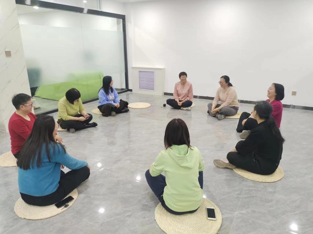 然后在冥想室大家进行了心灵分享,每个人依次分享了自己生活的高兴处、难处、并让大家自己说是不是“爱自己”,大家在培养孩子问题和家庭问题上产生了很强的共鸣,并通过大家扮演家庭成员的方式让老师们面对真实的自己,希望大家能按照自己真实的感受去做事。