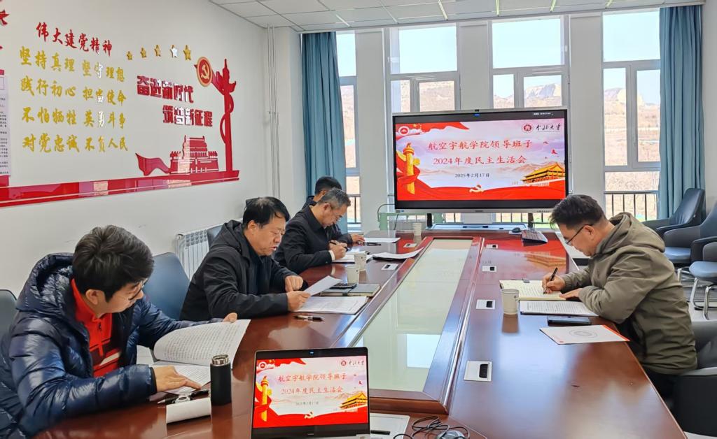 首先罗建国根据《航空宇航学院2024年度领导班子民主生活会方案》,介绍了学院领导班子成员深入学习研讨、广泛征求意见、开展谈心谈话等情况,通过认真撰写领导班子对照检查材料和个人发言提纲,为开好民主生活会奠定了基础。接着他代表学院领导班子做了对照检查,详细汇报了2024年度学院对照“四个方面”检查存在的问题,结合“反面”案例深入剖析了问题成因,针对上次民主生活会提出的问题并结合今年的改进情况,提出了2025年整改措施。随后,每位班子成员紧密联系个人工作实际,按照要求作个人对照检查发言,每个同志汇报后,其他成员结合他的思想、学习、工作实际等方面提出了批评性意见,每位同志均表示全面接收,在后续的工作中认真吸收、积极改正、全力实践、全员协作,为学院工作上一个新台阶而努力。