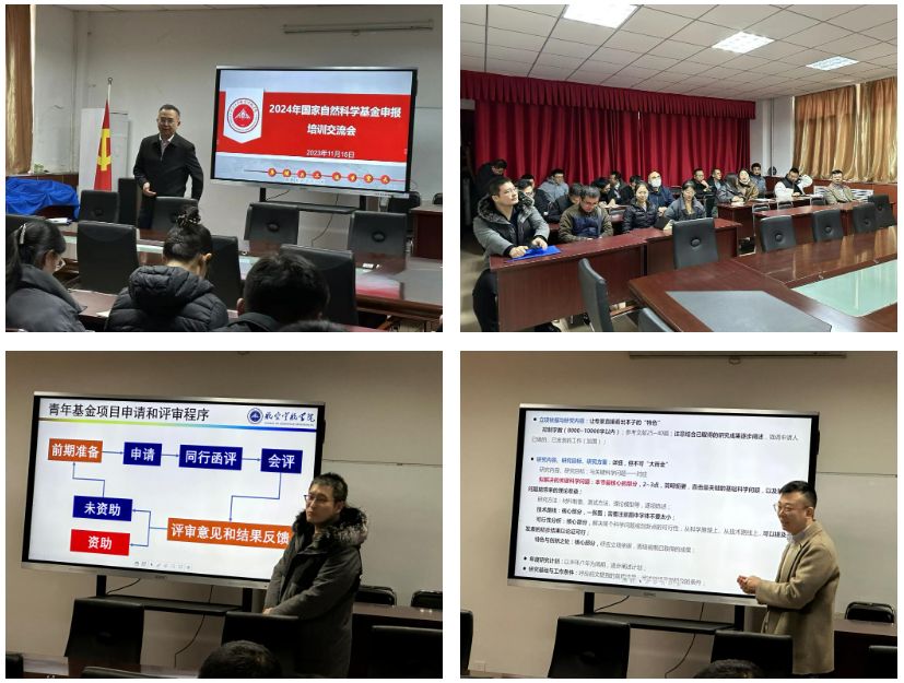 11月15日下午14:30,航空宇航学院2024年度国家自然科学基金申报培训交流会在10号楼一层培训室召开,会议由学院副院长徐鹏主持,45岁以下青年教师参会进行学习交流。