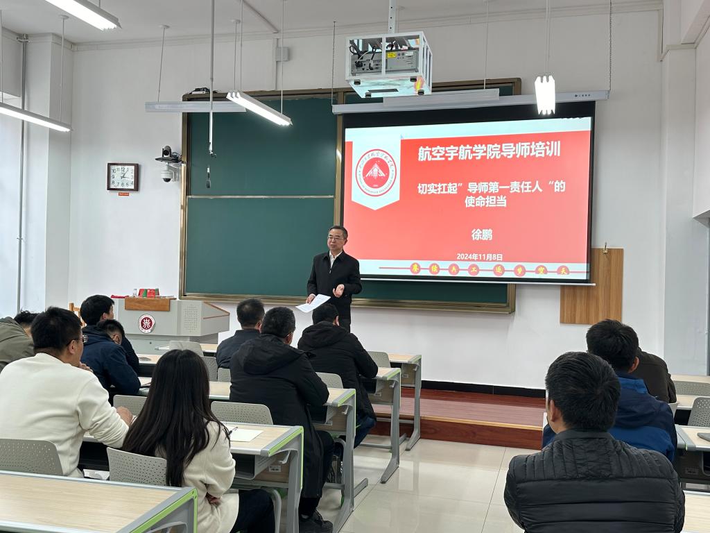 11月8日下午15:00,航空宇航学院导师培训交流会在18103Z召开,会议由学院副院长徐鹏主持,学院全体研究生导师参会进行学习交流。