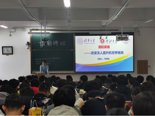 李京阳教授首先介绍了他的学习、创业经历及所创公司——清航装备(北京清航紫荆装备科技有限公司)。他很轻松地分享自己的思考和经历 ,但谈论梦想时却很严肃:既然我们出来干了,就要干改变世界的事,不拘泥于传统。创业,是李京阳教授人生中一个新转折点,“创业都是九死一生,比你考研、考公、找个好工作都难”,李教授说道。研发第一款交叉双旋翼无人机时,李京阳教授和他的团队碾转搬迁了几个地方,面对实验的危险、创新的艰难和实践的各种挫折,他们没有一个人退缩,也正是这种一往无前的精神,成就了李京阳教授和他的团队。“创新是一个国家的源动力,创新创业很难,同学们要努力学习,不要让未来的自己后悔”,李京阳教授告诫同学们说道。互动交流环节,同学们积极提出自己的疑问,均得到了李京阳教授耐心且风趣的回答。