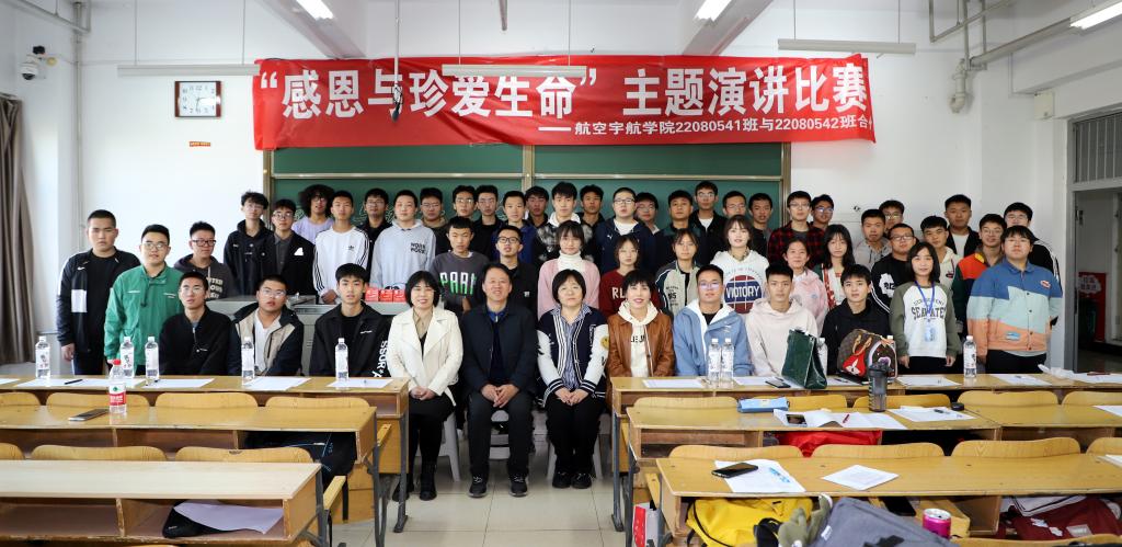 10月18日下午,航空宇航学院在十五号教学楼成功举办“感恩与珍爱生命”主题演讲比赛,此次活动由工程力学专业22080541、22080542班联合举办,门金璐同学和黄志亮同学主持。活动特别邀请学院党委书记罗建国、学生科科长张丽花、团委负责人段志薇、班主任安美荣等老师亲临现场。
