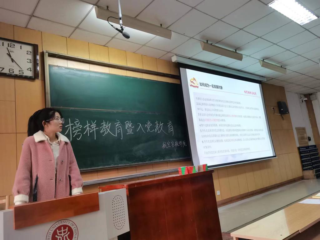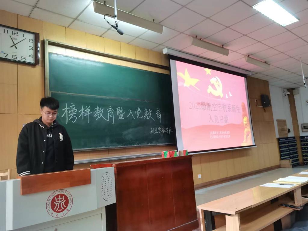 2022年10月23日上午十点,我院在11108教室召开2022级榜样教育暨入党启蒙大会,22级航天类专业班主任段雪倩出席会议,19级吕倩,侯贝然,鲍芃荣作为榜样分享了他们的学习考研经验,全体新生参与本次大会。
