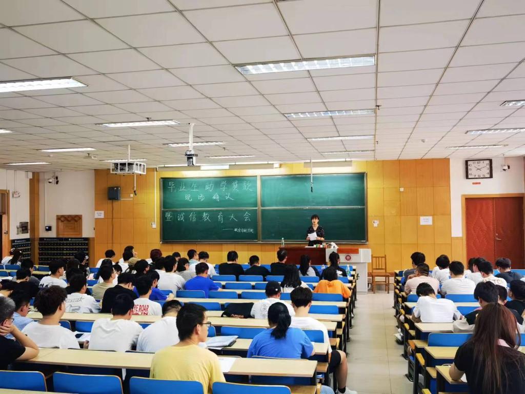 6月16日上午,航空宇航学院于11109H教室举办了2019届开行生源地贷款学生毕业现场确认暨资助诚信主题教育活动,活动由我院资助辅导员段雪倩主持,2019级申请生源地贷款的毕业生参加了活动。
