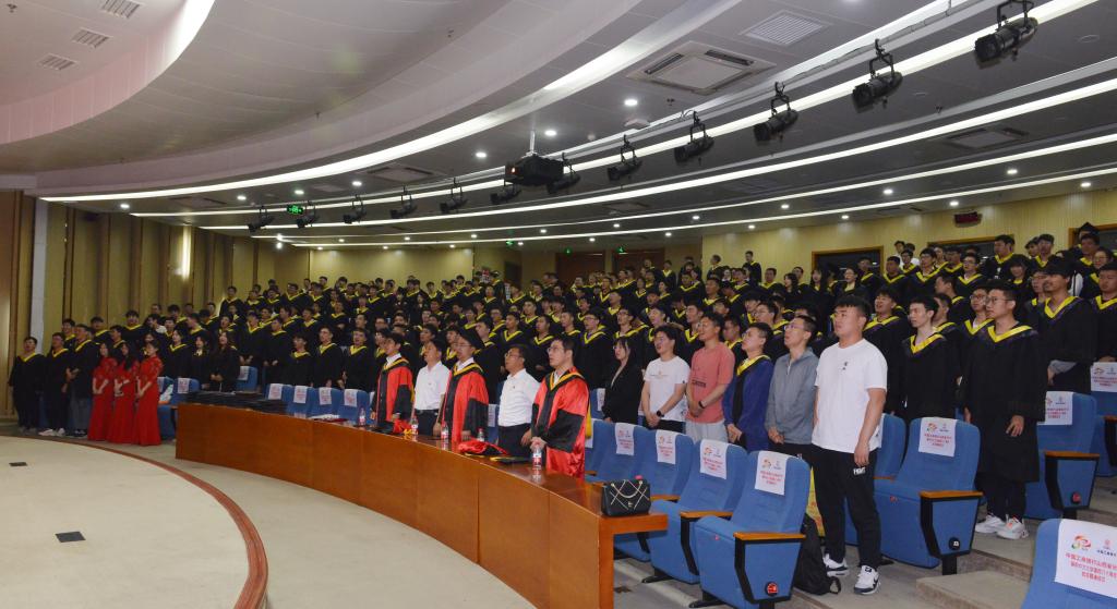 鲍芃荣同学作为毕业生代表发言,他首先表达了对老师与领导们对毕业生四年辛勤栽培的真诚感谢,同时他回顾了求学路上的深刻经历和美好时光,表达了对母校的不舍以及对未来的憧憬和展望,同时勉励学弟学妹们珍惜时光,不负韶华。朱博宇同学作为在校生代表发言,衷心祝福毕业师兄师姐们前程似锦、大展宏图,同时号召在校生们坚定理想信念,努力学习知识,培养良好品格,以优秀学长学姐为榜样,早日成长为栋梁之才。