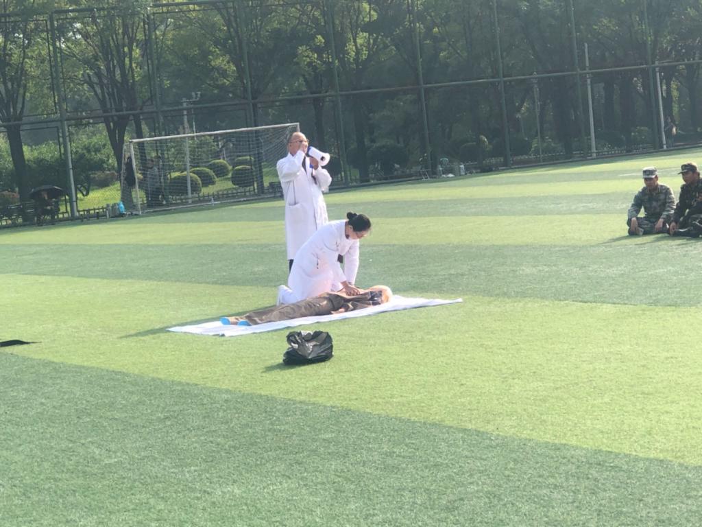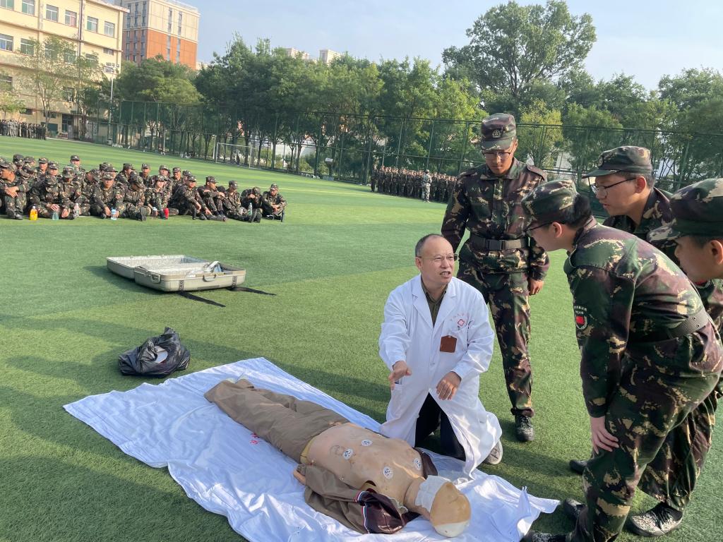 为增强学生应对突发事件和意外伤害的能力,普及应急救护知识和技能,提高学生自救、互救能力,航空宇航学院邀请校医院医生走近新生军训现场,开展应急救护培训。