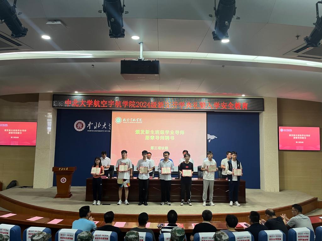 2024年9月19日下午,航空宇航学院在瑾瑜国际会议中心隆重举行2024级新生开学典礼暨安全教育会议。学院党委书记罗建国、院长李京阳、副院长徐鹏、系主任及教师代表出席大会并在主席台就座,各科室负责人、新生班主任、新生学业导师、朋辈导师、辅导员及2024级全体新生参加,大会由学院党委副书记兼副院长史瑞根主持。