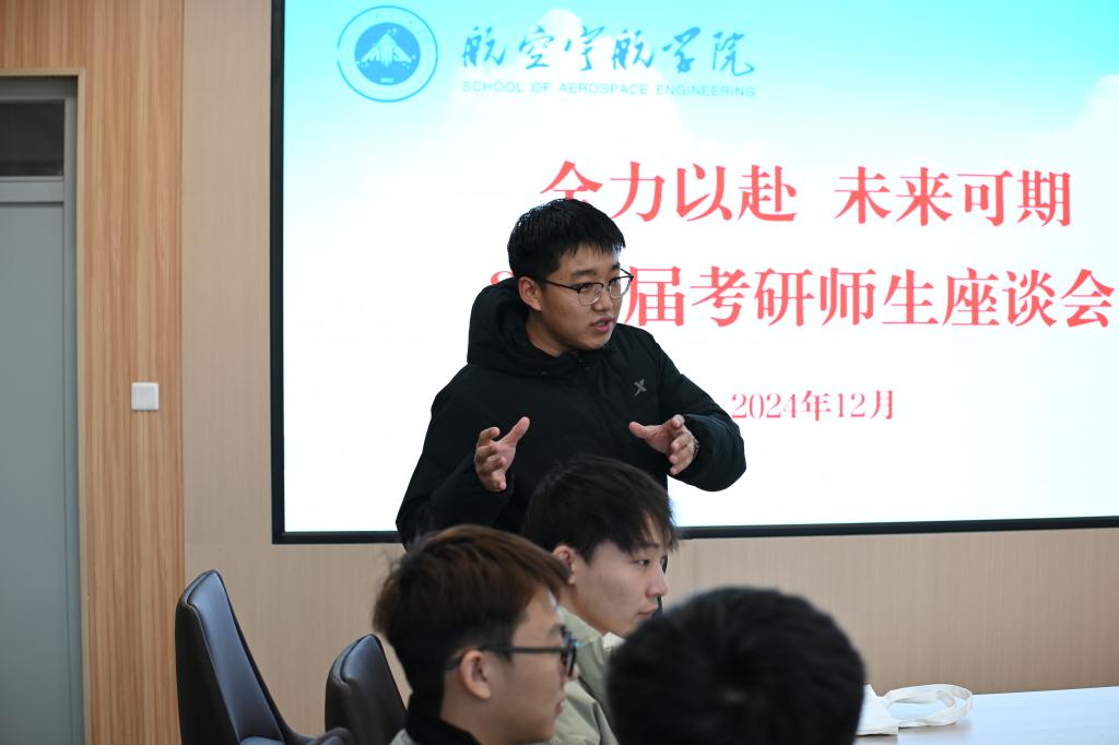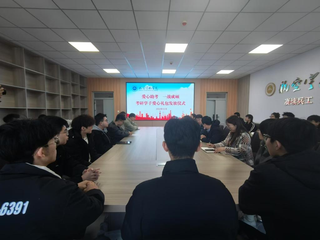 2025年全国硕士研究生招生考试日益临近,为鼓舞考研学子士气、坚定其考试信心,航空宇航学院于2024年12月4日在院楼312会议室举办了考研学子爱心礼包发放仪式暨2025届考研师生座谈会,为学子们送上温暖与助力。学院党委书记罗建国、院长李京阳、科研科科长韩文艳、教学科科长方群玲、团委副书记、学生科副科长王姣和2025届考研学生代表30余人参会,会议由团委书记、学生科长王月花主持。
