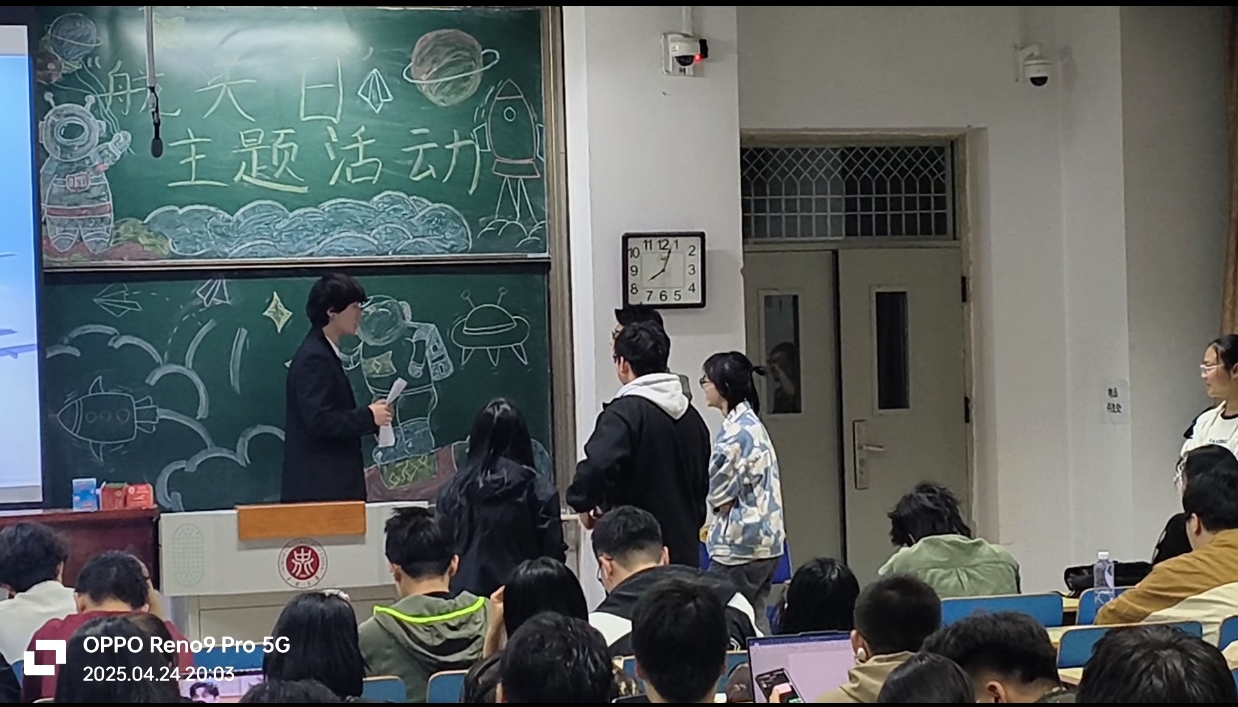 自2016年国务院批准将每年4月24日设立为 “中国航天日”,这一特殊日子便承载着铭记历史、传承航天精神、提升全民科学素质的重要使命。2025年4月24日晚,中北大学航空宇航学院科学技术协会精心筹备的 “4・24 航天日” 主题科普晚会,在11112H教室璀璨启幕。此次活动以晚会为载体,致力于普及航天知识,激发同学们对航天事业的无限向往与浓厚兴趣,吸引了近百名同学齐聚一堂。