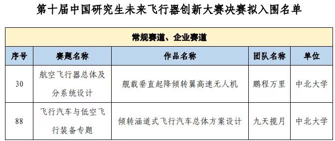 2024年10月25日,我院李京阳和郝文乾老师指导的两支研究生队伍在第十届中国研究生未来飞行器创新大赛中成功进入总决赛,这成为我校入围总决赛仅有的两支参赛队伍。其中,“舰载垂直起降倾转翼高速无人机”属于航空飞行器总体及分系统设计,该无人机由我院研究生王浩、赵晨光、陈松茂、崔政和昝炳祥研发,具有垂直起降、快速机动以及自主飞行等优点,可用于高空救援、侦察监视、对地打击、信息干扰、空中预警等领域;“倾转涵道式飞行汽车总体方案设计”属于飞行汽车与低空飞行装备专题,该飞行汽车由我院研究生高舒煜、张增奎、郑楷源、陈功和刘俊辉研发,该研究属于未来颠覆性飞行汽车设计,可满足未来城市群出行和低空复杂运行环境的需求。