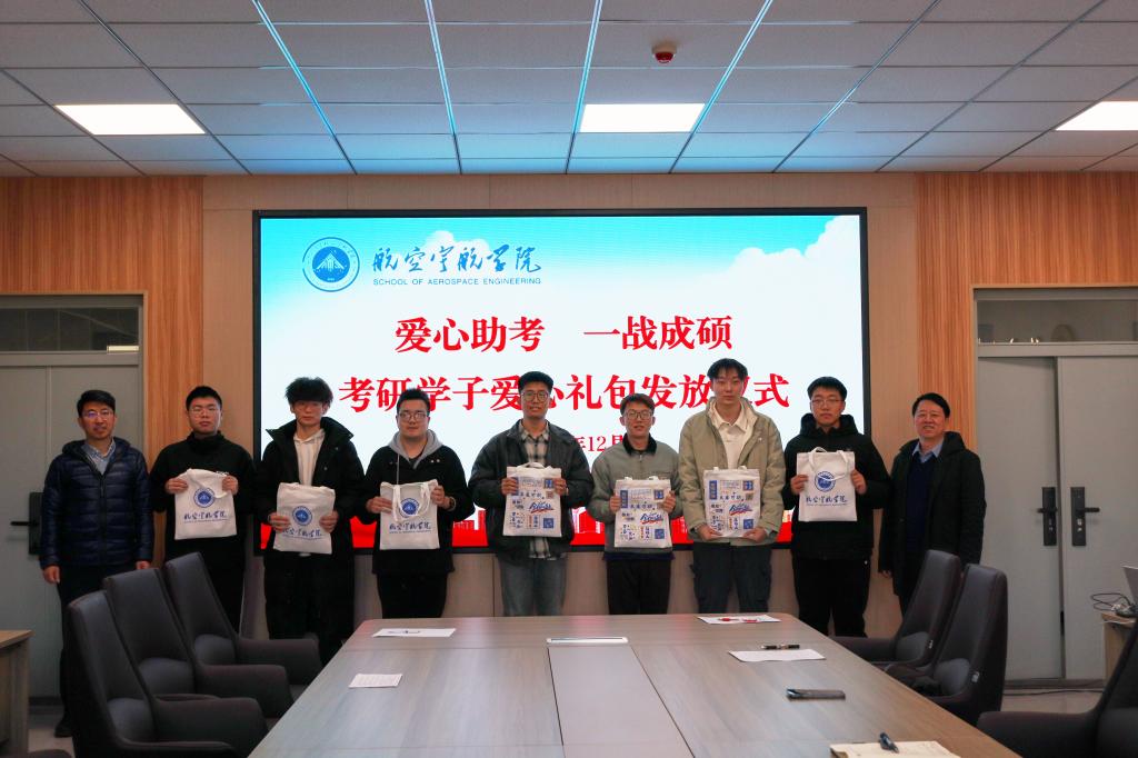 2025年全国硕士研究生招生考试日益临近,为鼓舞考研学子士气、坚定其考试信心,航空宇航学院于2024年12月4日在院楼312会议室举办了考研学子爱心礼包发放仪式暨2025届考研师生座谈会,为学子们送上温暖与助力。学院党委书记罗建国、院长李京阳、科研科科长韩文艳、教学科科长方群玲、团委副书记、学生科副科长王姣和2025届考研学生代表30余人参会,会议由团委书记、学生科长王月花主持。