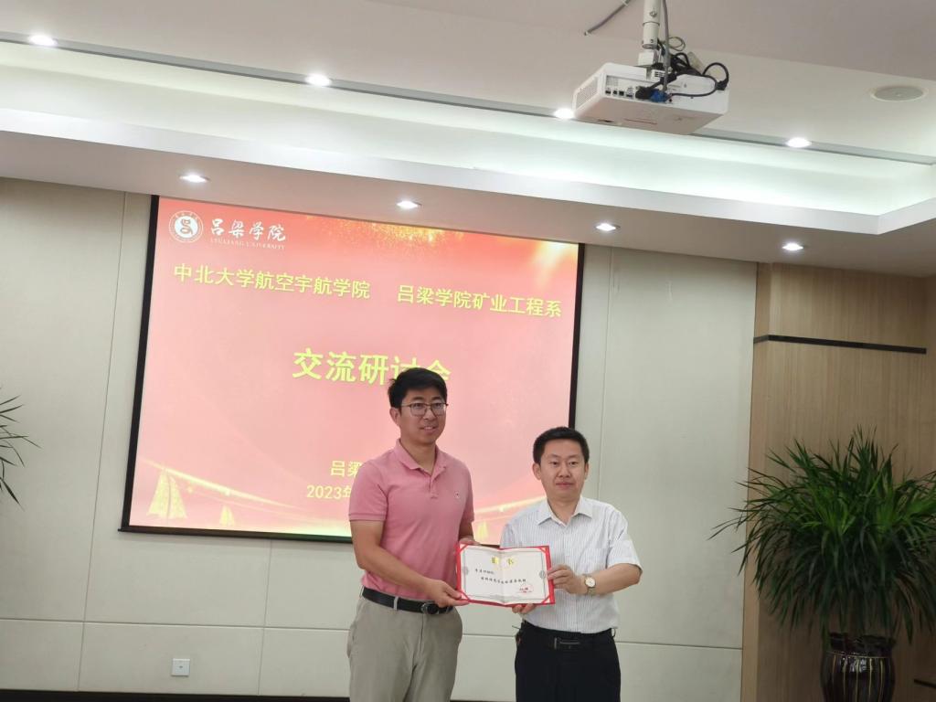 6月13日,航空宇航学院党委书记罗建国、院长李京阳一行5人赴吕梁学院调研学院建设工作,薛晋文院长、王三虎副院长、矿业工程系党总支书记薛淑萍、系主任宋宏志等院领导参加。座谈会上,薛晋文院长对学院一行的到来表示热烈地欢迎,并向大家详细介绍了吕梁学院发展史、学科特色专业、师资力量、科研方向等情况。李京阳院长介绍了中北大学发展史、航空宇航学院师资力量、科研成果、成果转化、教育教学以及青年教师的成长等,双方就学院建设、研究生联合培养、高层次人才师资培养、课题申报等工作进行了深度交流和沟通,会后,薛晋文院长为李京阳院长颁发吕梁学院客座教授聘任证书,李京阳院长表示,未来加强院系联系,在项目合作、学术交流及研究生培养等多个方面深入合作,共促院系发展。