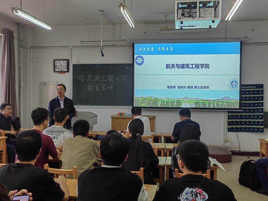 2023年9月20日下午,哈尔滨工程大学航天与建筑工程学院杨在林副院长一行莅临我院展开研究生招生宣讲,本次宣讲由我院副院长徐鹏主持,2024届毕业生参加讲座。