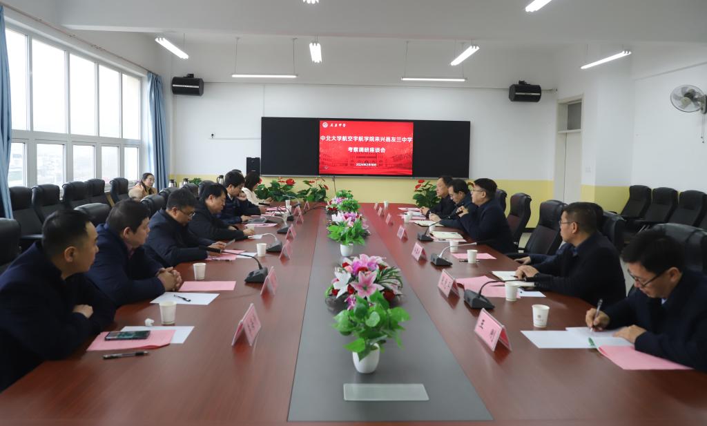 2月18日上午兴县一二0师学校校长、友兰教育集团负责人裴章生、友兰中学校长郭黎明、友兰中学党支部书记张明明等领导与学院一行进行了座谈。座谈会伊始,裴章生校长介绍了兴县县情及学校总体情况,他讲到,兴县友兰中学师是为纪念著名士绅牛友兰而得名,政府为满足兴县学子享受优质高中教育的需要,新建的一所高级中学;郭黎明校长对学校的办学情况以及目前高三学生的学业情况进行了详细介绍,李京阳院长介绍了我院的发展历程、学院师资力量、科研成果、成果转化、教育教学以及青年教师的成长以及未来发展规划,并重点对航空宇航学院产学研项目“清航无人直升机装备”发挥的作用、应用的领域等做了详细讲解。在座谈会上,大家对我院的办学理念、管理水平、教学质量、产学研项目给予了充分肯定,此次调研促进双方在学生培养、教育教学改革等领域的密切合作,鼓励更多的优秀学子报考我院。