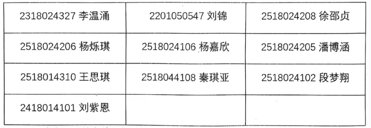 2025年10月 20日至11月4日,中北大学 “新生杯” 篮球赛圆满举办。赛事期间,航空宇航学院女子篮球队的同学们奋勇拼搏、默契协作,以昂扬的斗志、精湛的球技一路过关斩将,最终勇夺冠军,为学院赢得了崇高荣誉,充分展现了航宇学子锐意进取、团结奋进的精神风貌。为表彰先进、树立榜样,进一步培养同学们无私奉献、团结协作的优良品德,激励广大同学积极投身学院各项工作与文体活动,凝聚集体力量,经学院研究决定,给予航空宇航学院女子篮球队全体成员通报表扬一次。具体名单如下: